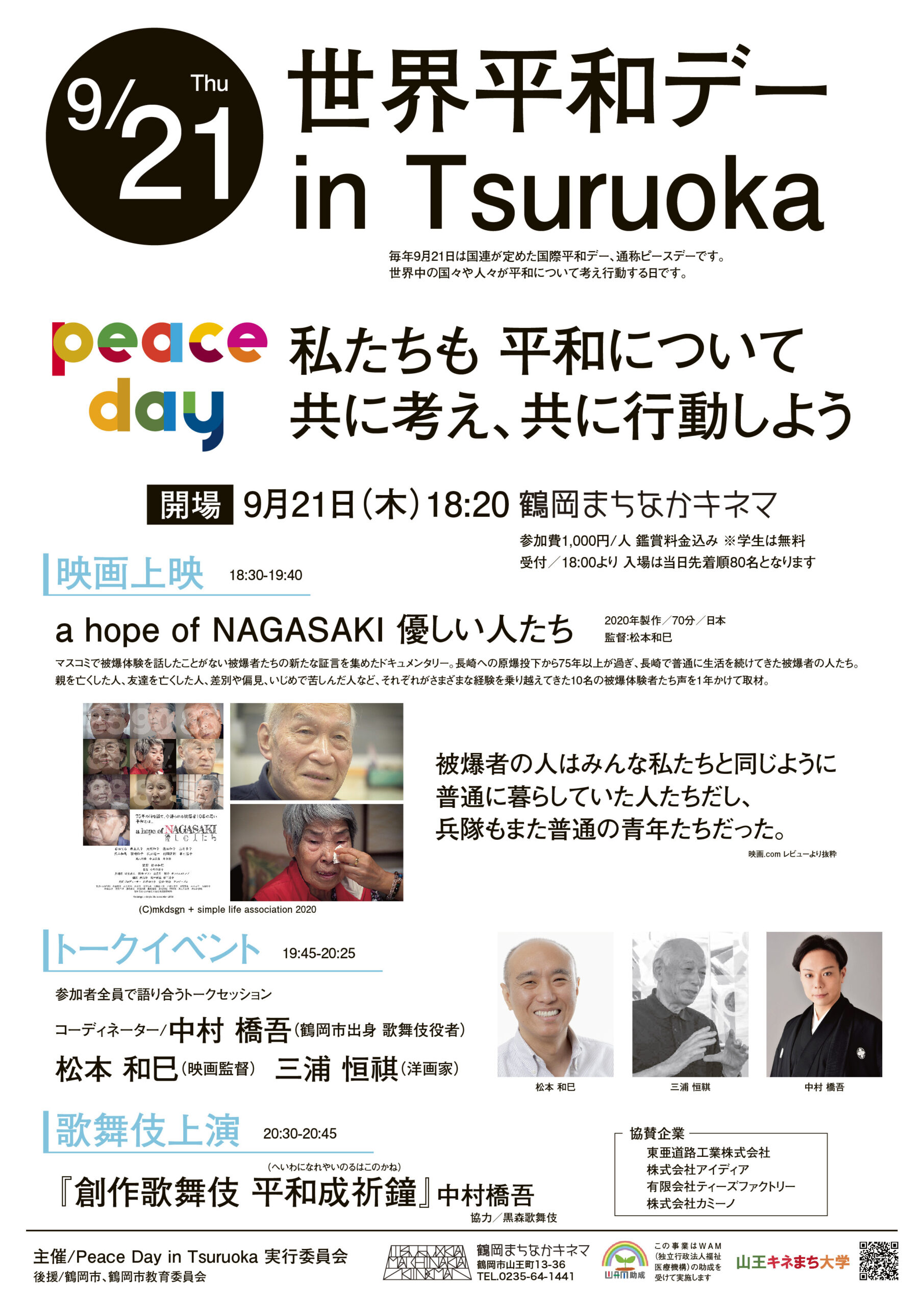 2023年9月21日、山形県鶴岡市の”鶴岡まちなかキネマ”にて”a hope of NAGASAKI 優しい人たち”が上映されます。